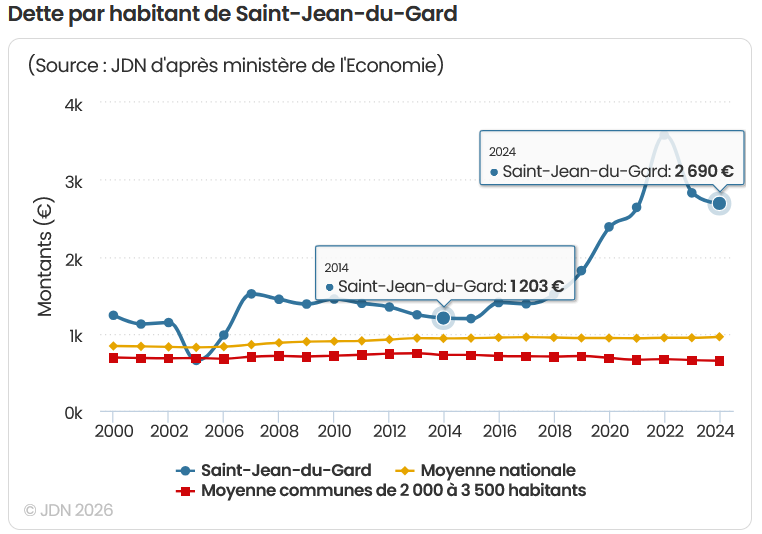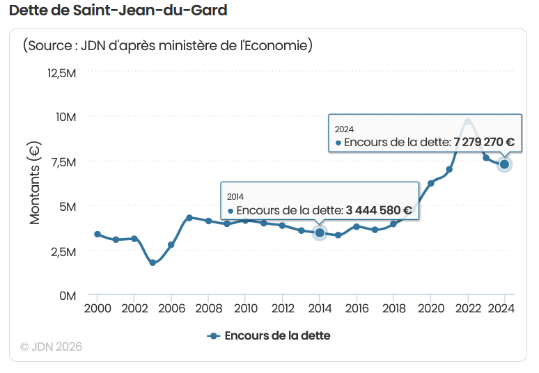 Saint Jean du Gard fait face à un endettement extrêmement lourd, son niveau est préoccupant. Il faut remettre de la rigueur et de la cohérence dans la gestion financière de la commune afin de redonner de l’air à notre village.